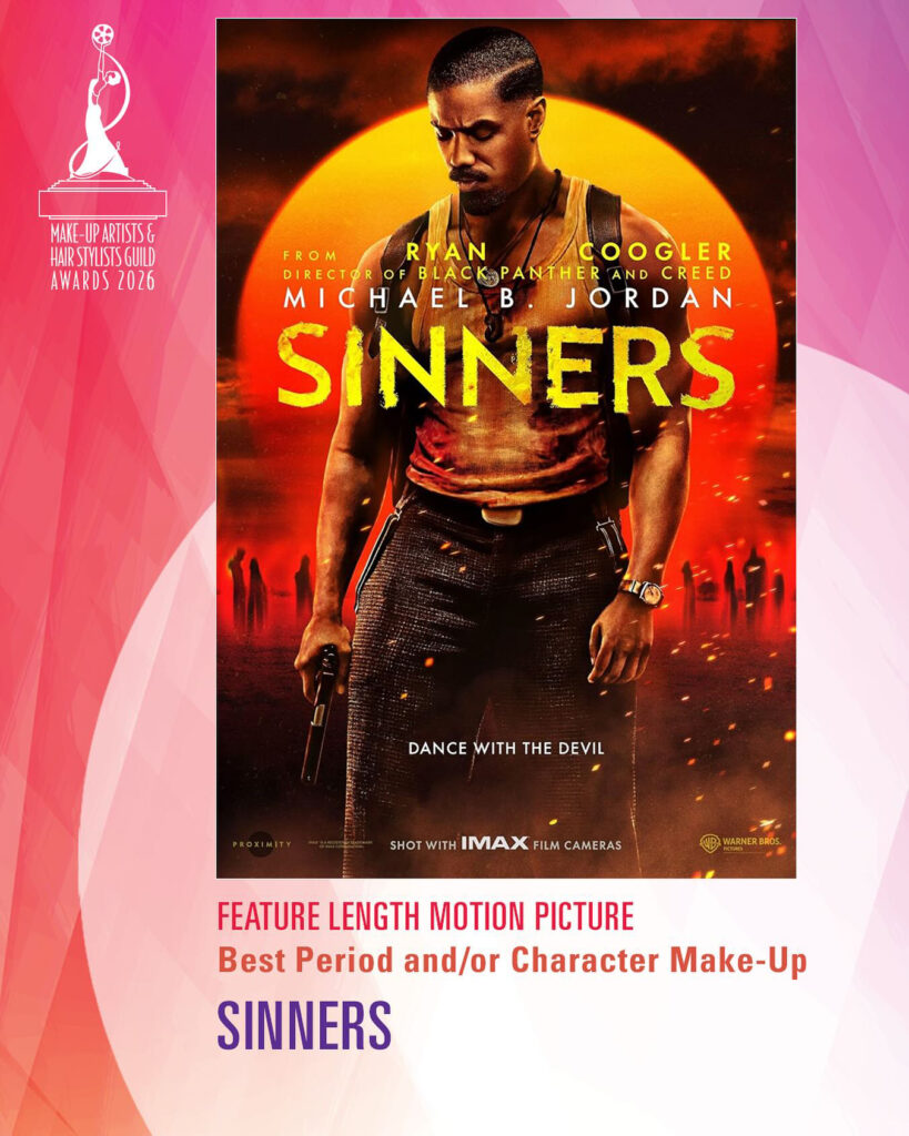 No ano passado, “A Substância” venceu duas categorias do MUAHS – Melhor Maquiagem em Filme Contemporâneo e Melhor Maquiagem Protética Especial – e logo depois levou o Oscar. Com suas duas vitórias como filme de época, “Pecadores” ganha força e disputa palmo a palmo com “Frankenstein” o Oscar de Melhor Maquiagem e Cabelo, categoria na qual a Academia de Hollywood passou a incluir o departamento de Cabelo (ou Penteado), em 2013.