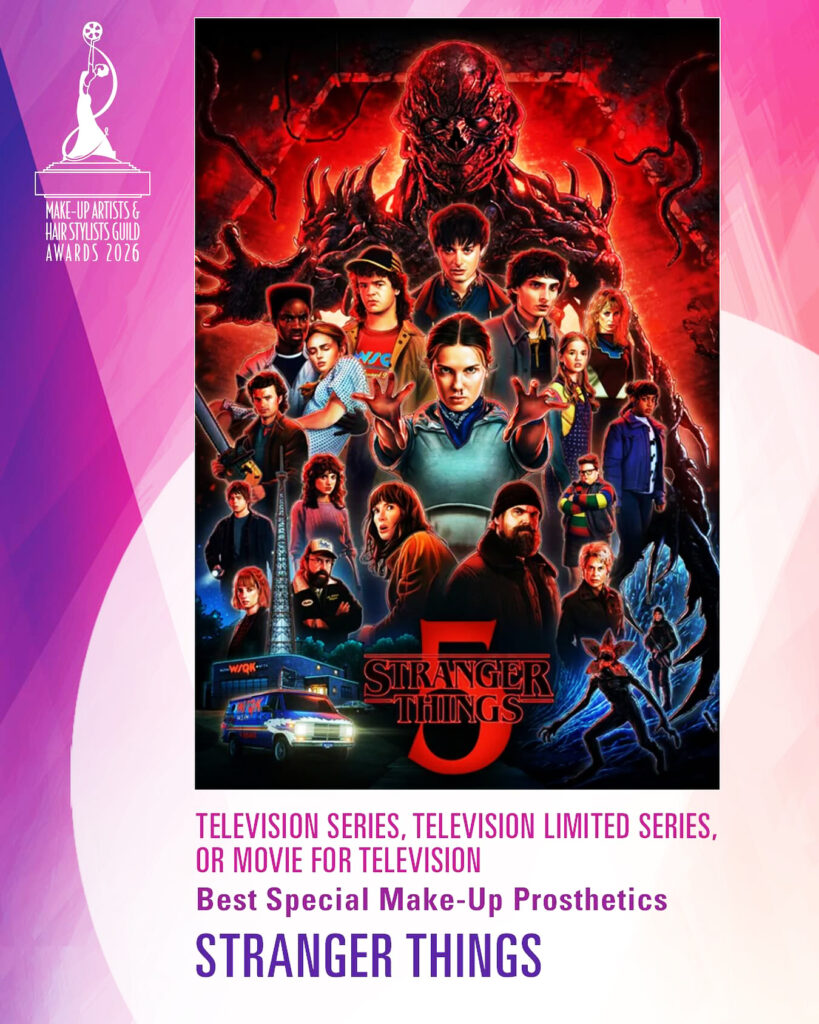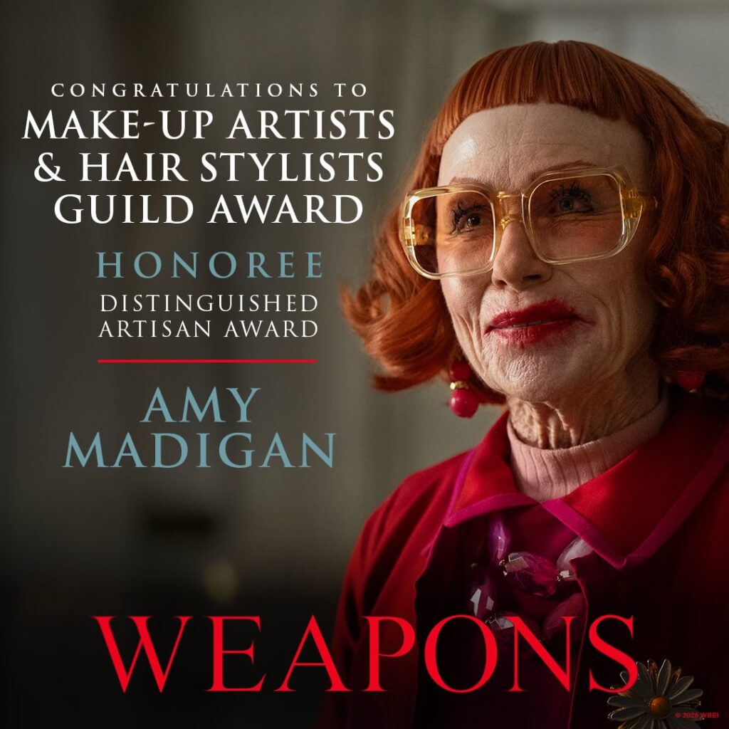 Um dos filmes de terror mais elogiados do ano passado, “A Hora do Mal” acabou perdendo as três categorias em que concorria no MUAHS: Melhor Maquiagem e Melhor Penteado em Filme de Época, vencidas por “Pecadores”, e Melhor Maquiagem Protética, que foi para o favorito “Frankenstein”. Ao menos, Amy Madigan foi reconhecida com o prêmio Distinguished Artisan Award, por sua inesquecível caracterização da “tia Gladys” em “A Hora do Mal”. Pelo papel que viralizou mundialmente, ela pode levar o Oscar de melhor atriz coadjuvante, aos 75 anos, 40 anos depois de sua primeira indicação, por “Duas Vezes na Vida”, em 1986.