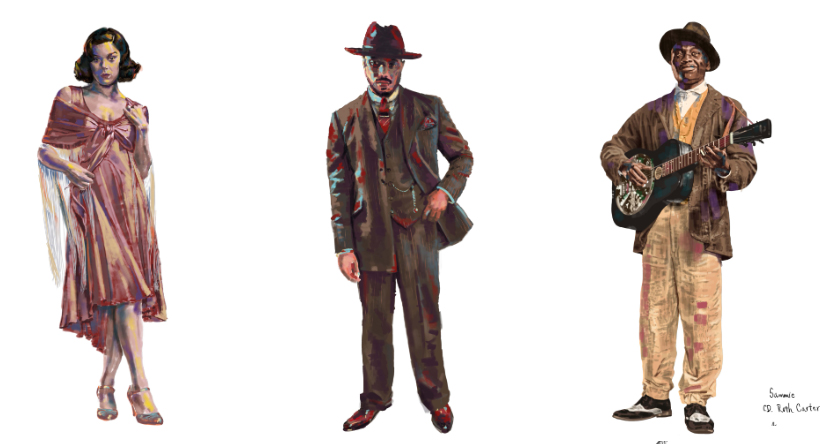 Cuidado que se estendeu também às caracterizações femininas, com detalhes que expressam a personalidade de cada mulher na história. De Annie (Wunmi Mosaku, indicada ao Oscar de Melhor Atriz Coadjuvante pelo papel), com seu look africano que reforça sua força espiritual, passando por Mary (Hailee Steinfeld), cujo look mais glamouroso teve Lauren Bacall como inspiração, até Pearline (Jayme Lawson), que surge como uma esposa infeliz no casamento até se revelar uma sensual cantora no bar dos gêmeos.